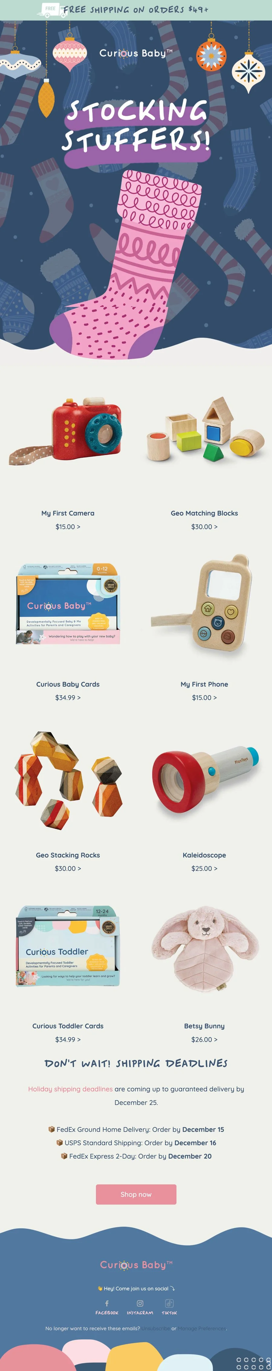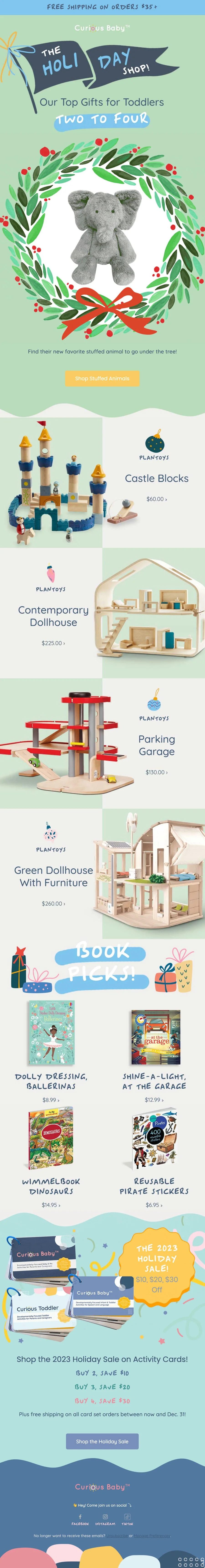 Each fourth quarter our team strategized and mapped out a layered email strategy with 20+ campaigns arriving to our customers between November 1 and December 26. This requires organization and a detailed system to approve, edit and schedule campaigns with multiple teams involved in the process. I worked far ahead of schedule to ensure Curious Baby’s products were in our customers inbox early, often and with multiple nudges to covert.