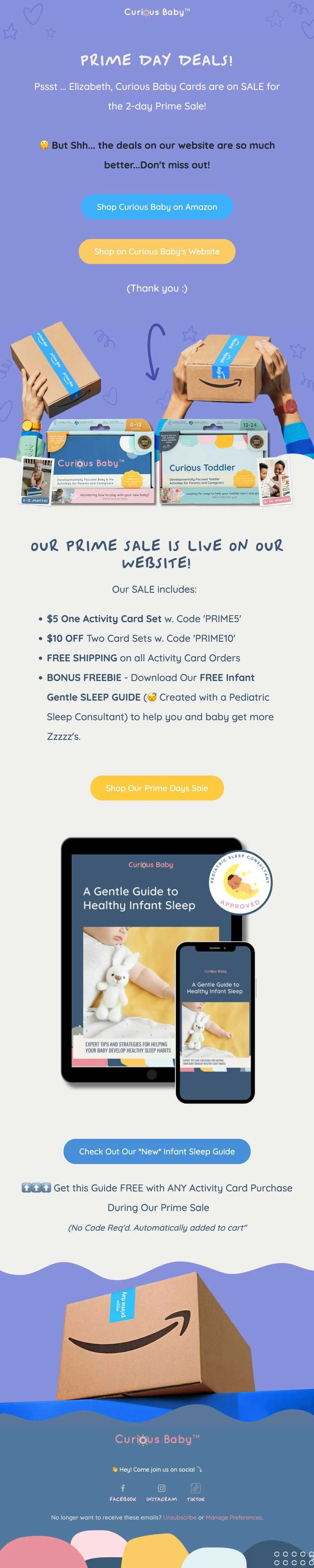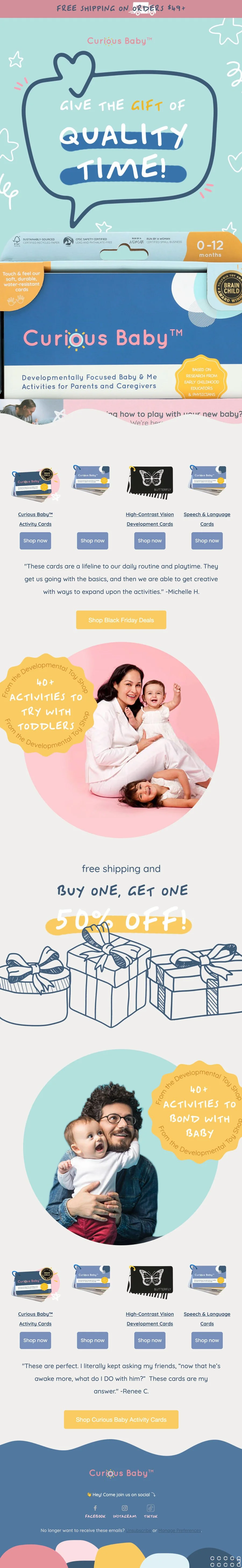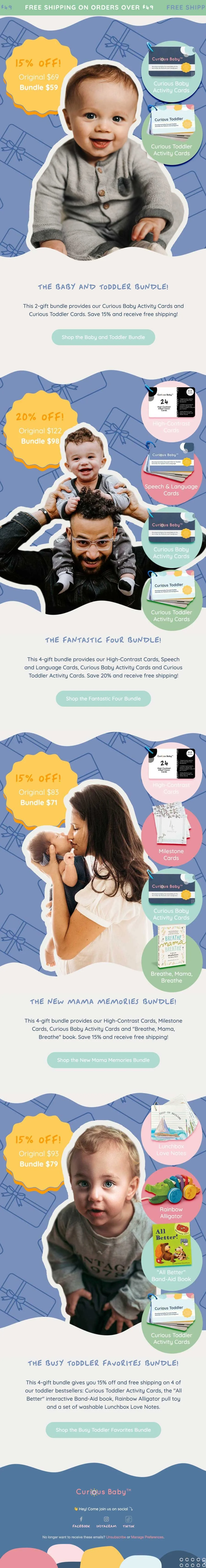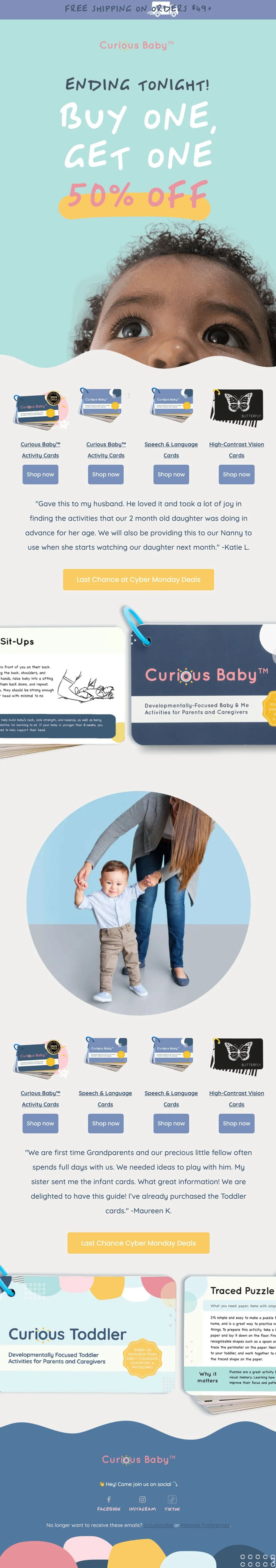 The playful designs of the toy were a delight to design create! I used Curious Baby’s signature colors, fonts, and design elements to keep brand recognition high. These campaigns upsold to the customer and were layered into the Welcome and Post-Purchase journeys.